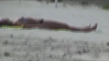Pēc baseina nobriedusi masiere kails klientu